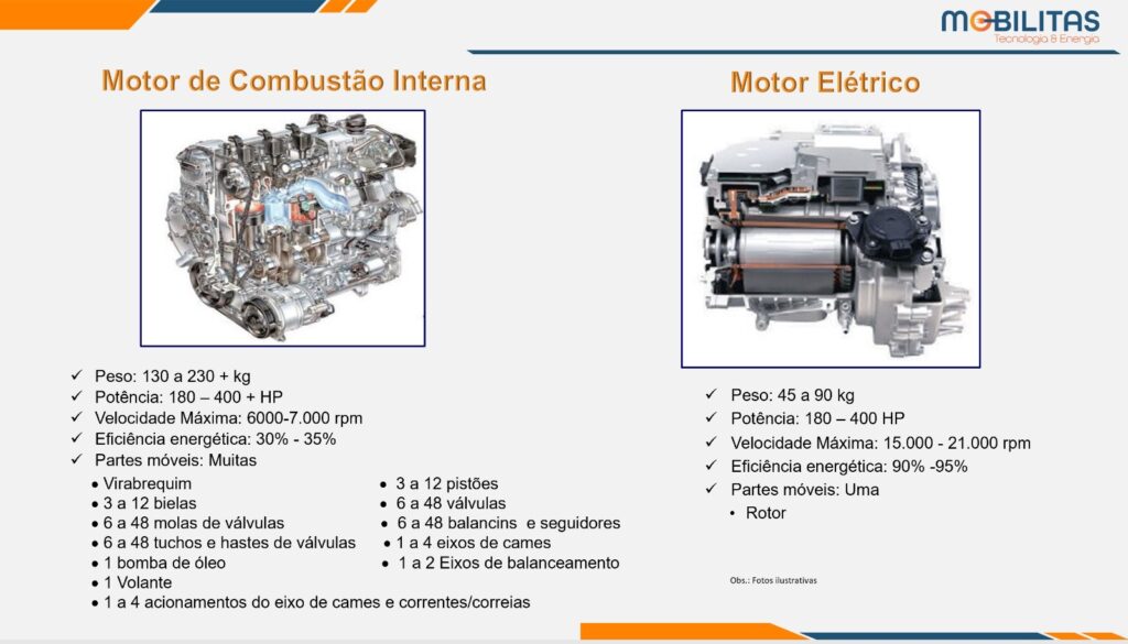 CARACTERÍSTICAS: Motor Elétrico (ME) vs. Motor a Combustão Interna (MCI)